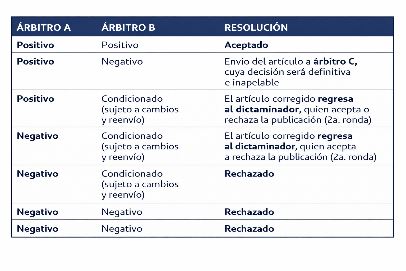 Si existieran discrepancias sustanciales entre los dictámenes emitidos, o dudas relevantes sobre la calidad científica del manuscrito, el Comité Editorial podrá remitir el trabajo a un tercer evaluador externo, cuya decisión será considerada definitiva. En ningún caso el Comité Editorial designará como evaluadores a personas que mantengan vínculos de consanguinidad hasta el tercer grado o de afinidad hasta el segundo grado con los autores del manuscrito, a fin de garantizar la transparencia y objetividad del proceso.